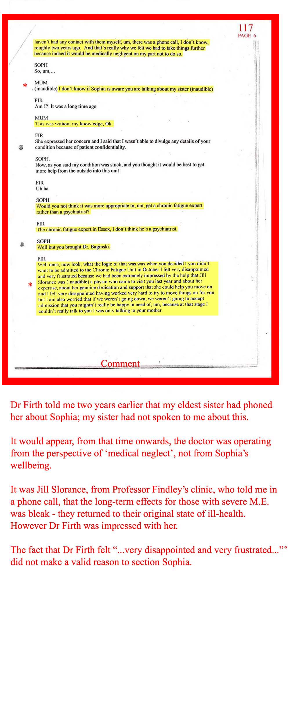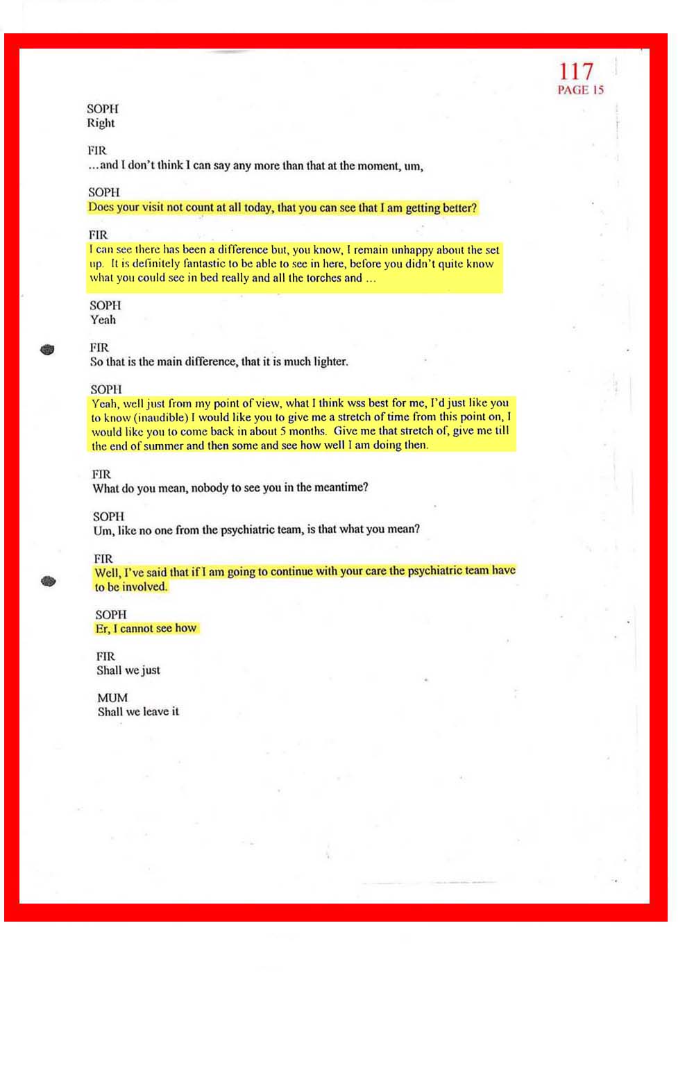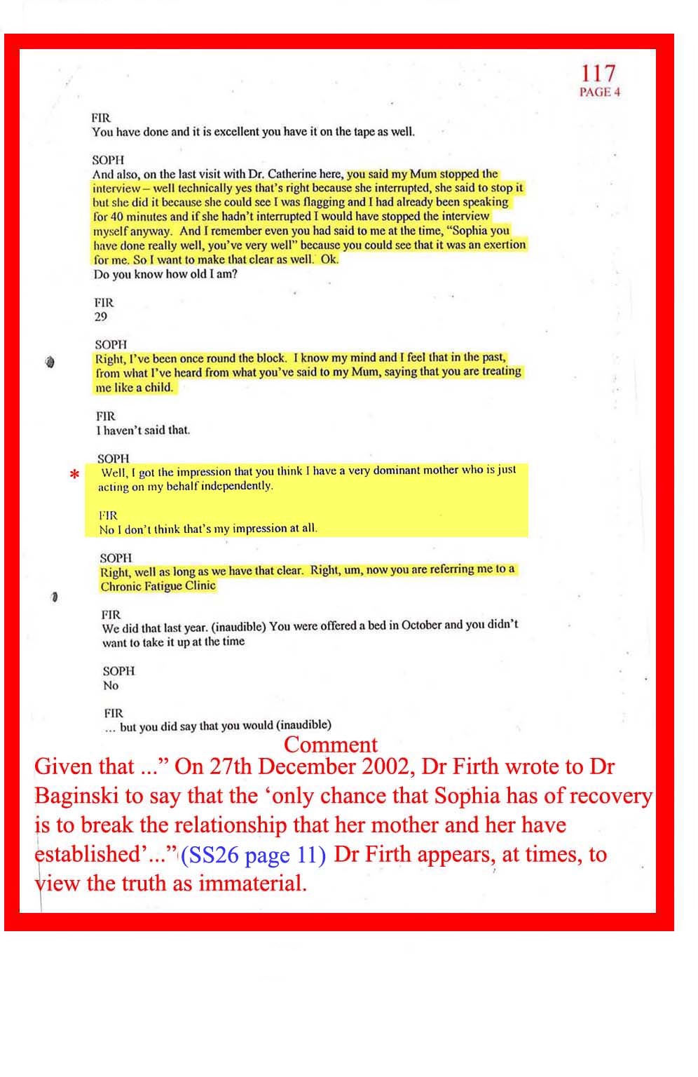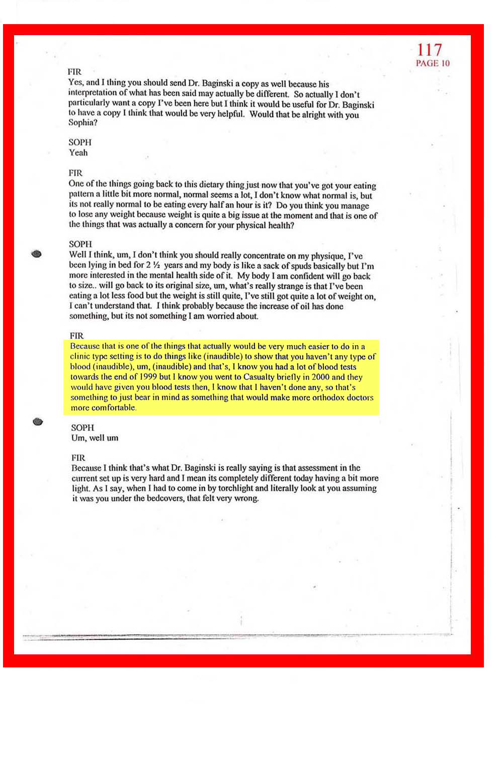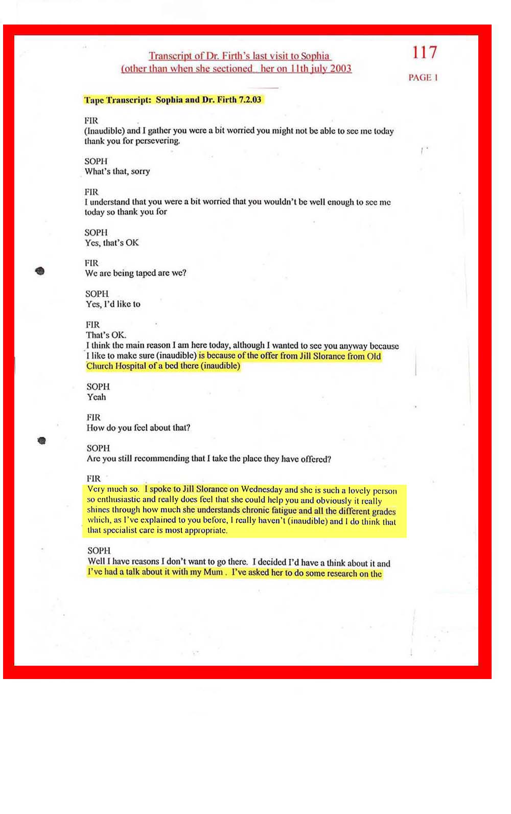 DOC.No. 117 (Transcribed notes from tape made at Dr Firth's last visit to Sophia)