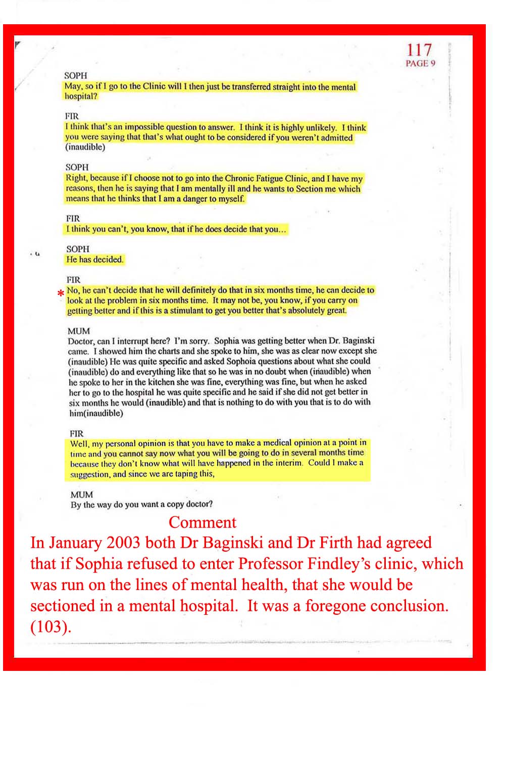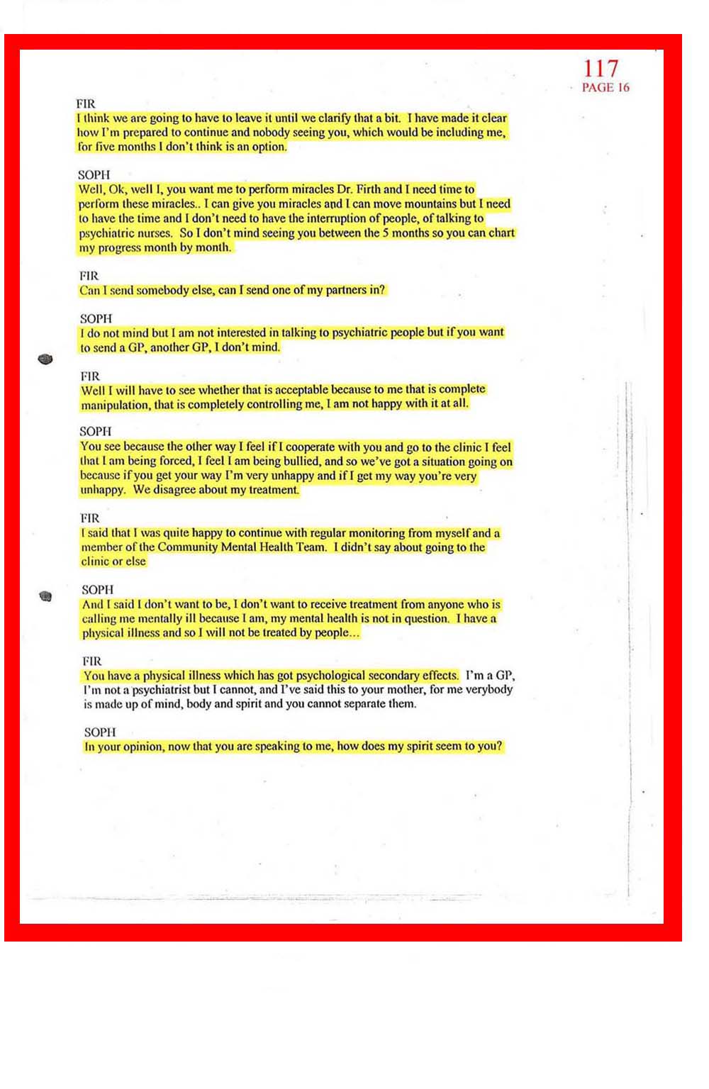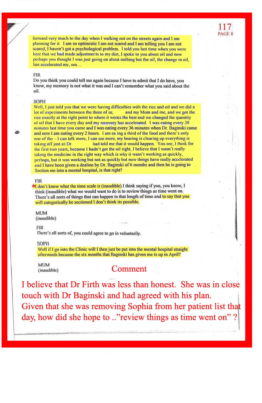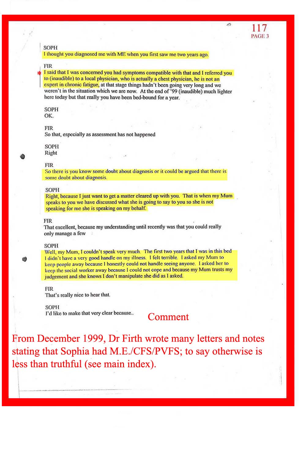 DOC.No. 117 (Transcribed notes from tape made at Dr Firth's last visit to Sophia)