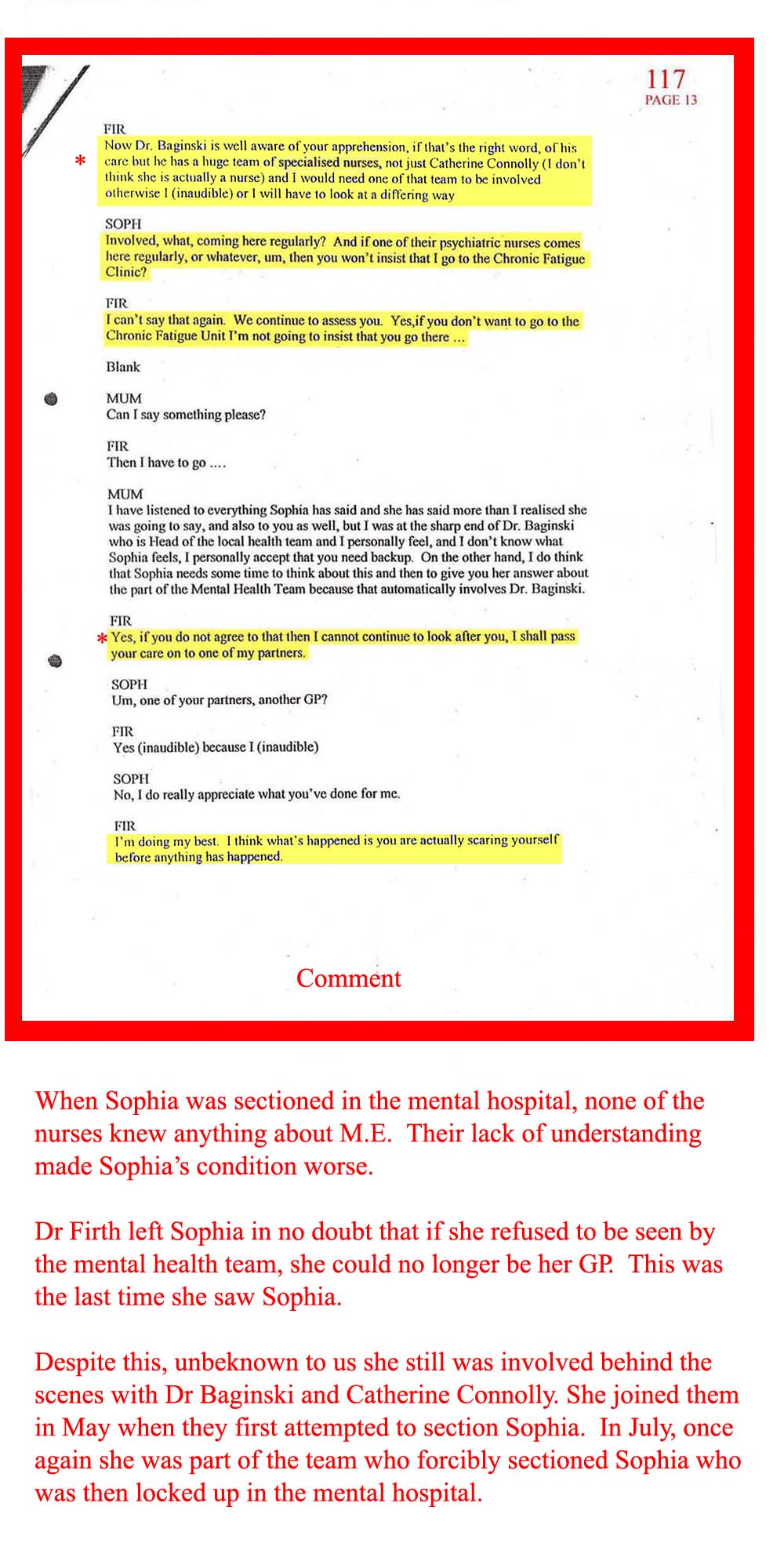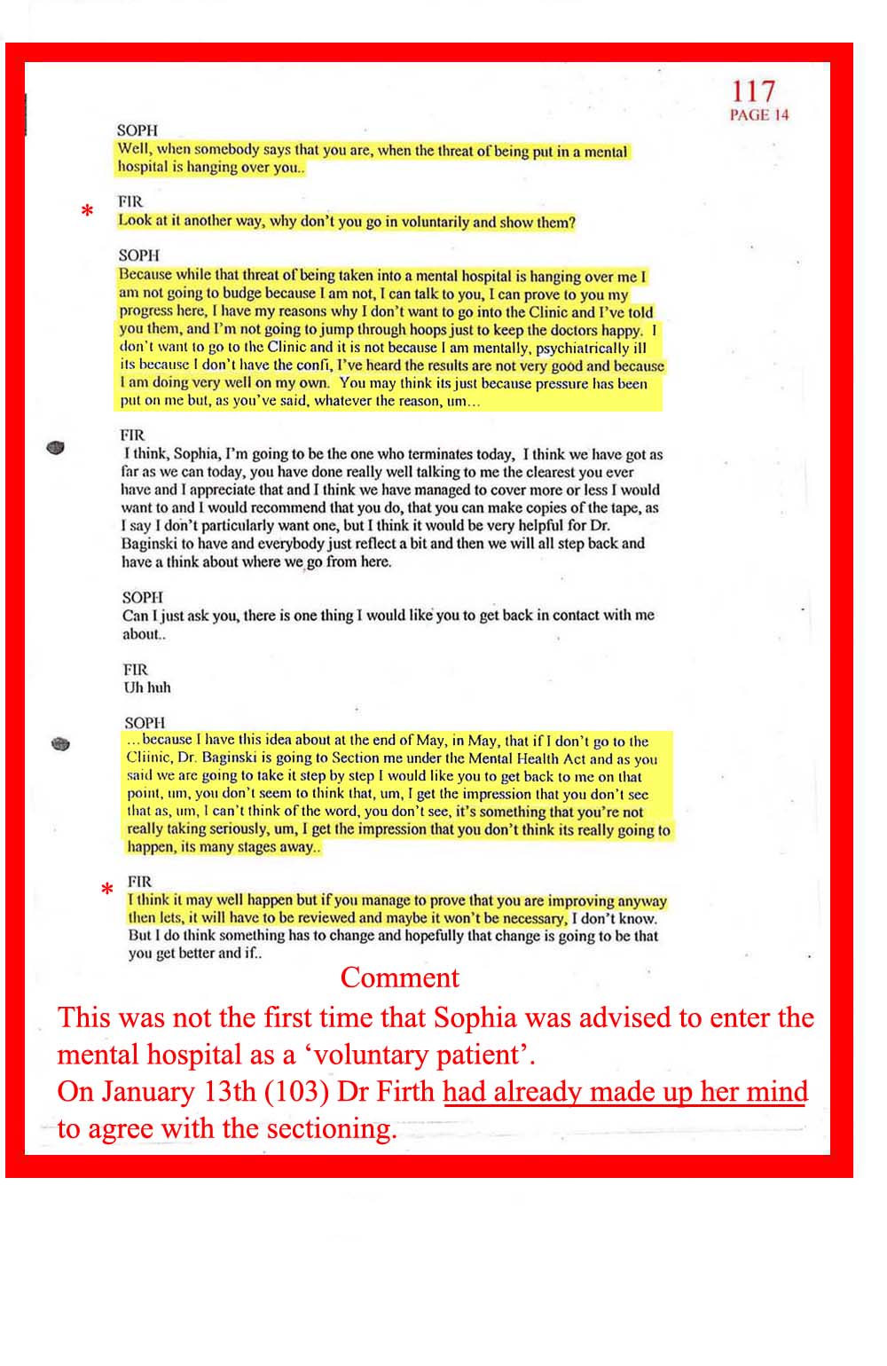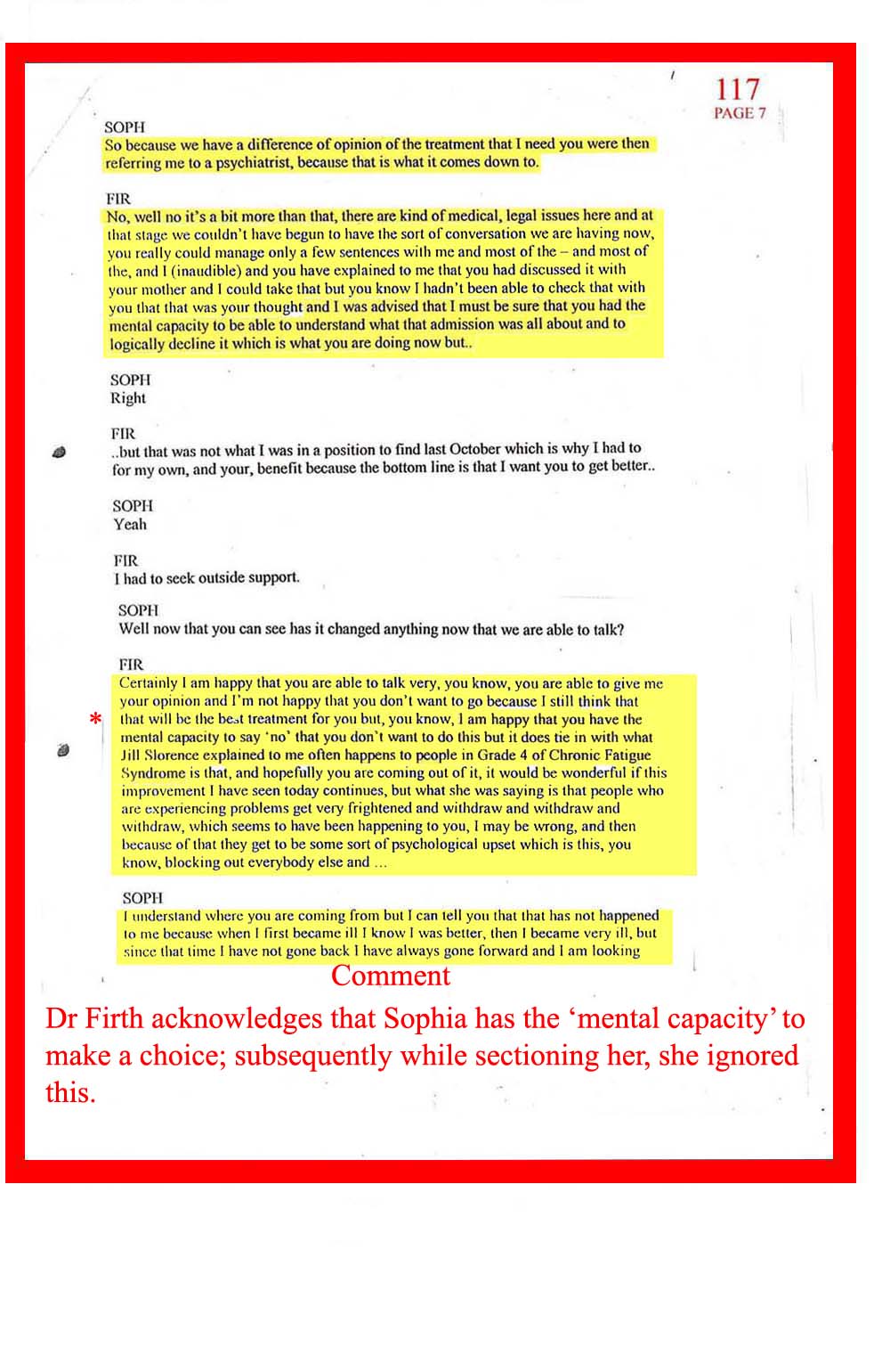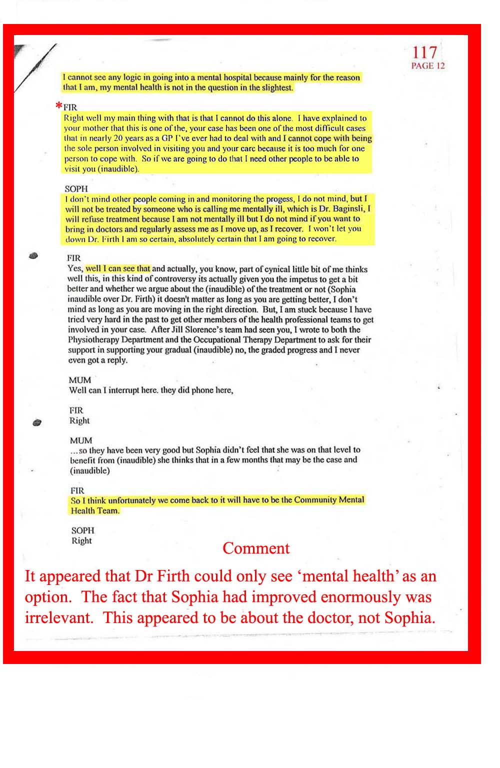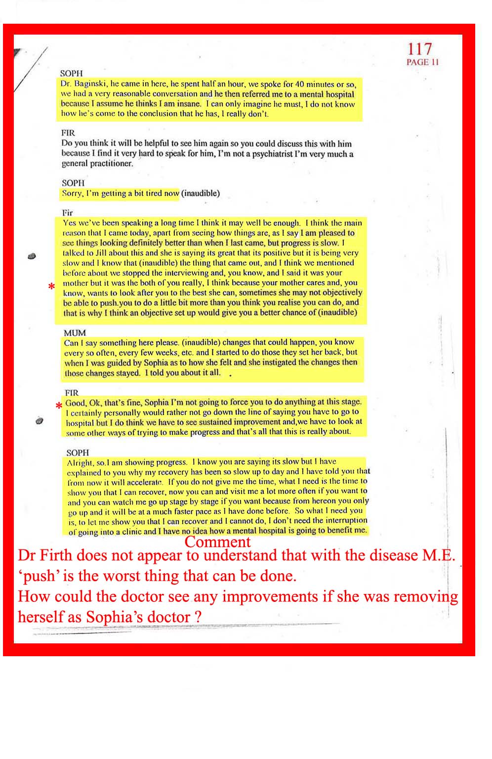 DOC.No. 117 (Transcribed notes from tape made at Dr Firth's last visit to Sophia)
