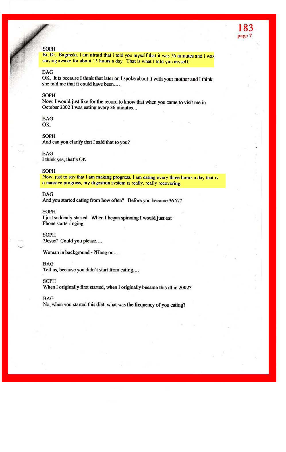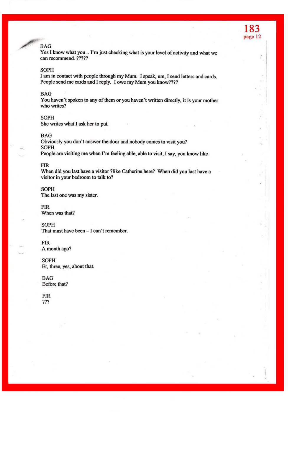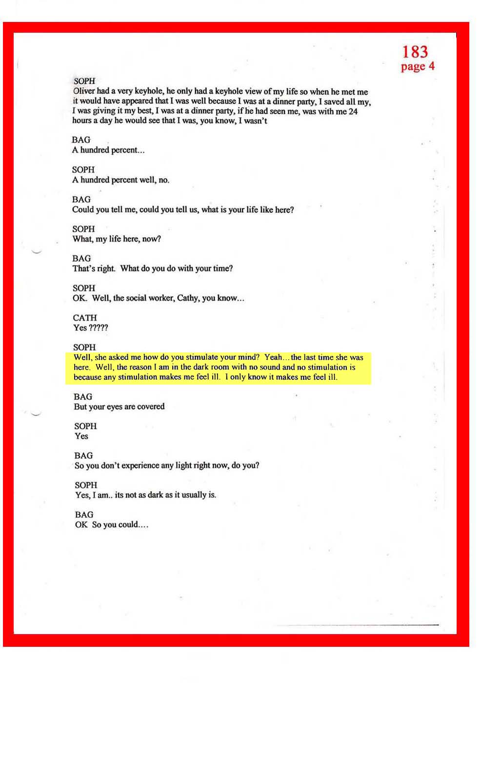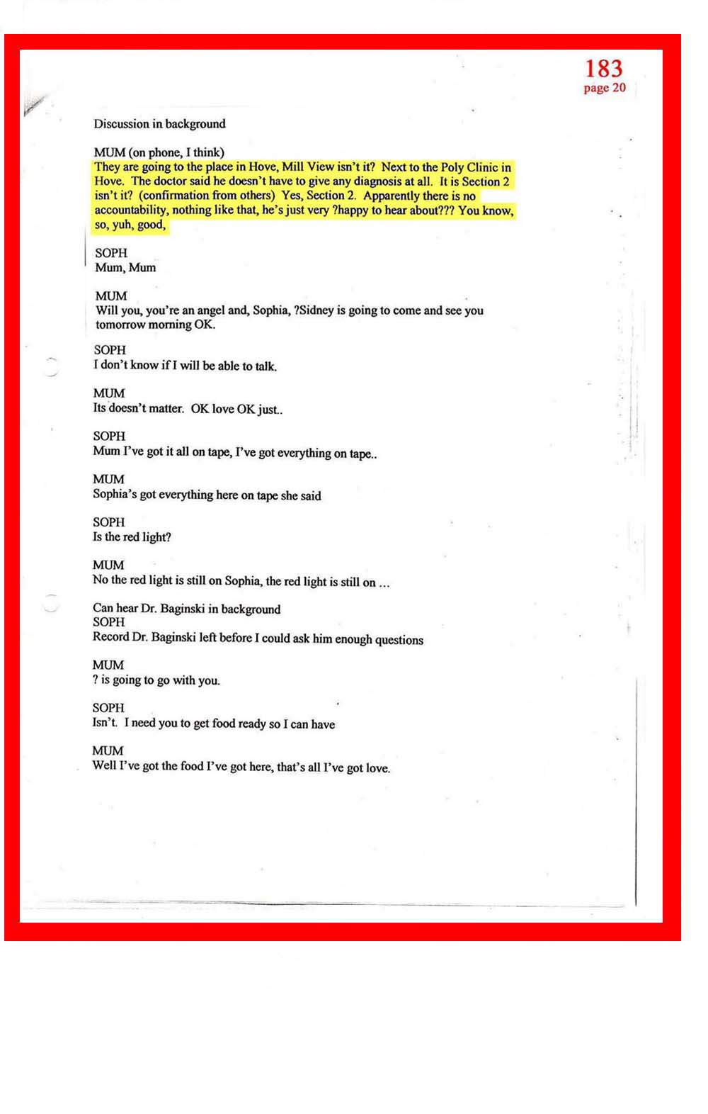 DOC.No. 183 (Transcript of tape made during sectioning of Sophia)