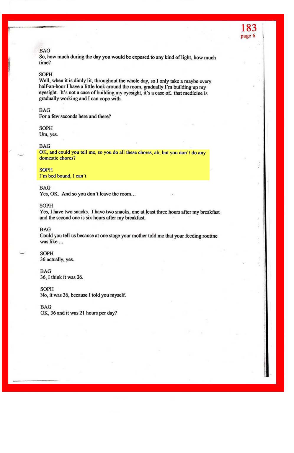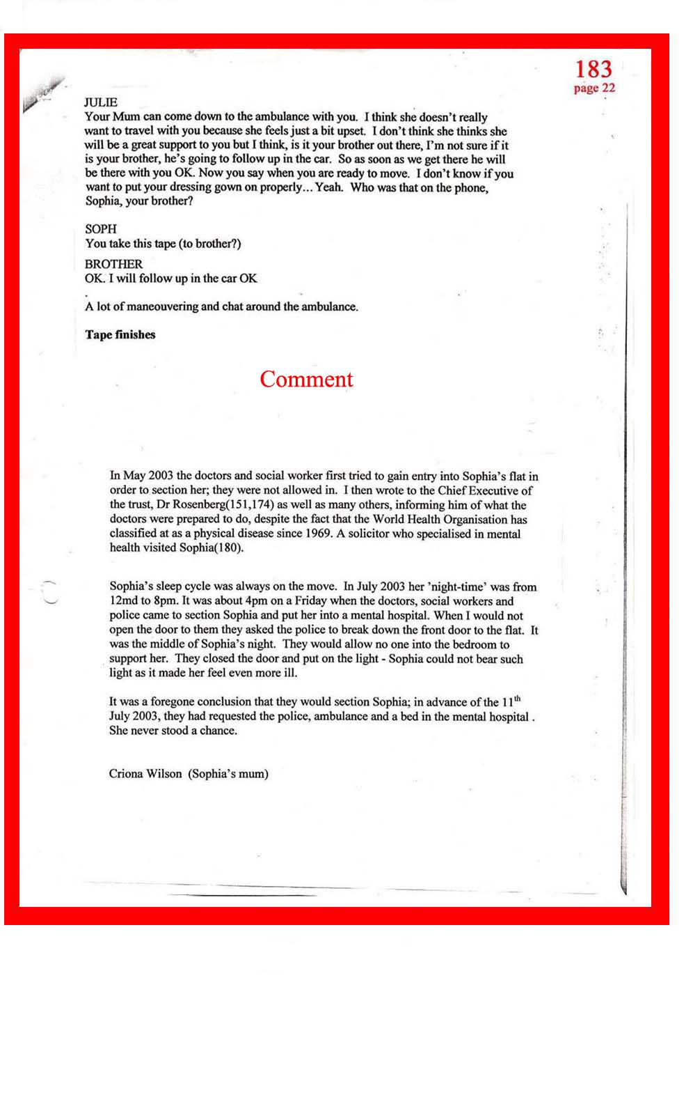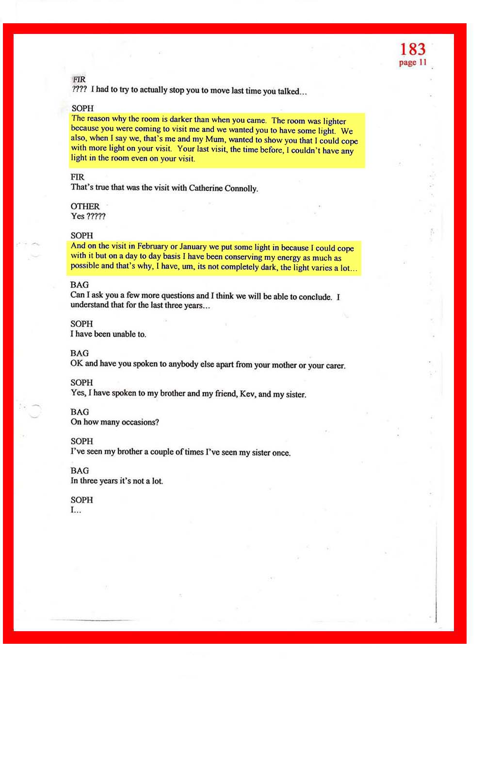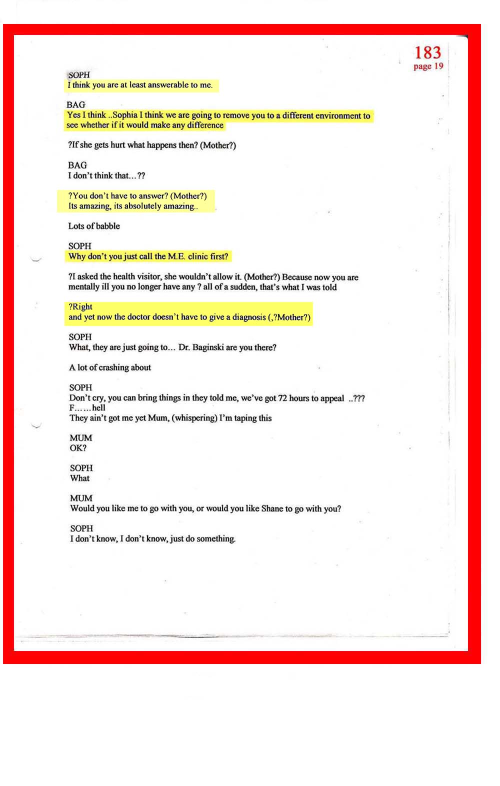 DOC.No. 183 (Transcript of tape made during sectioning of Sophia)