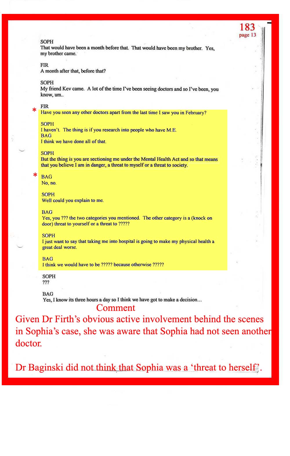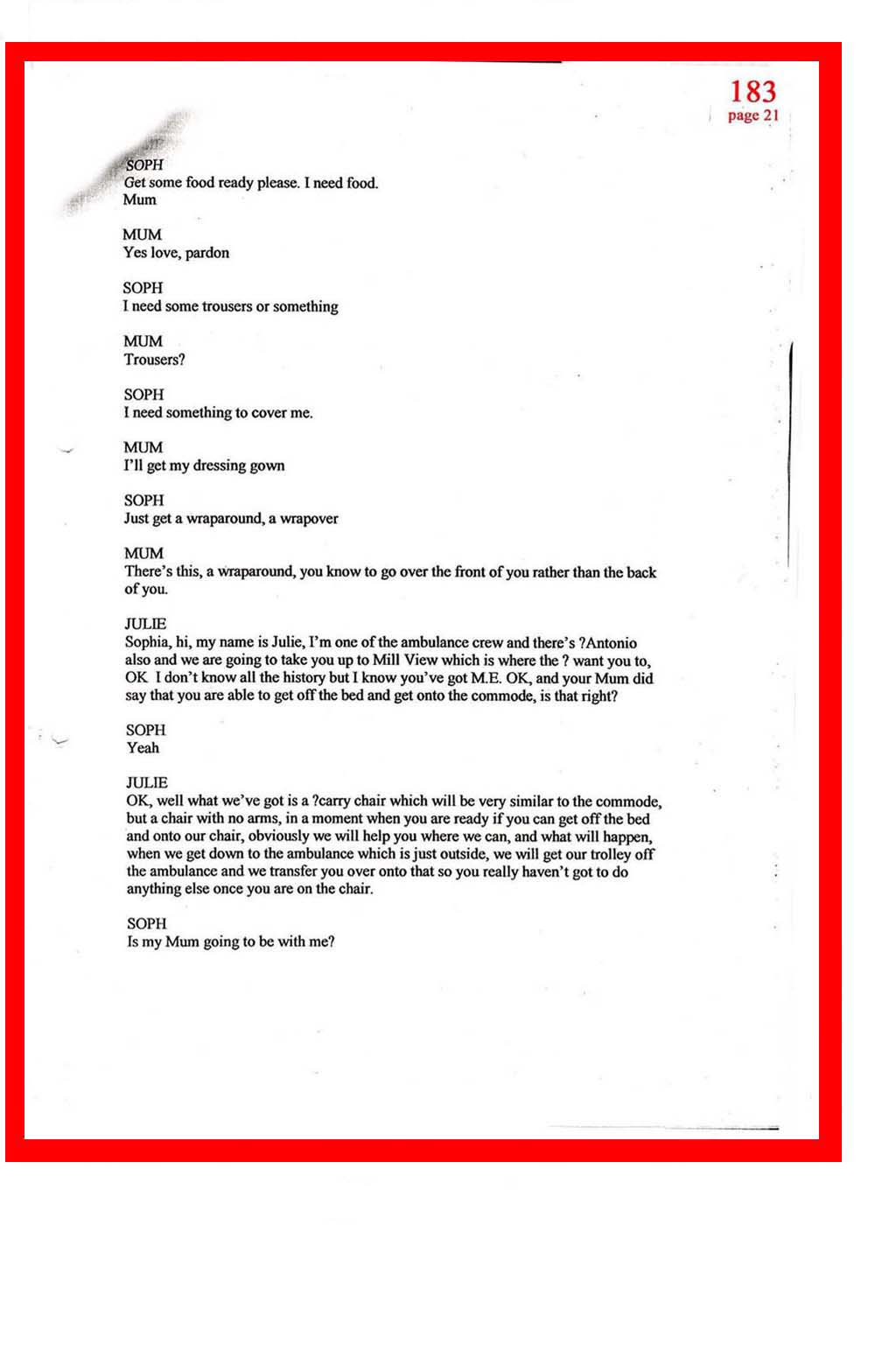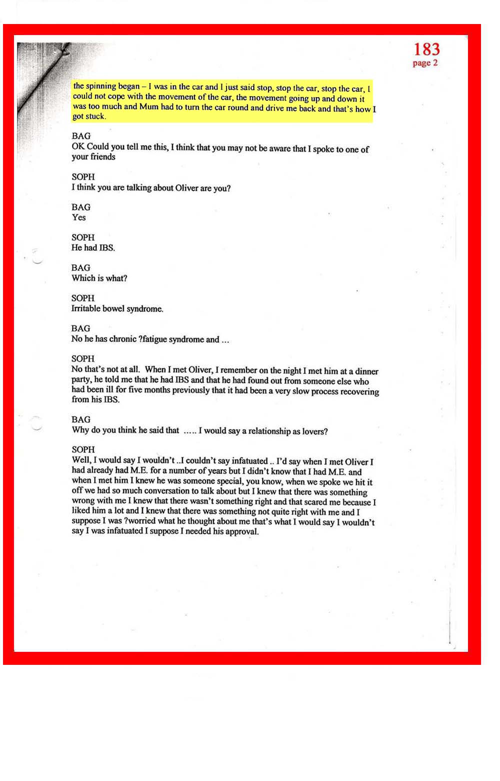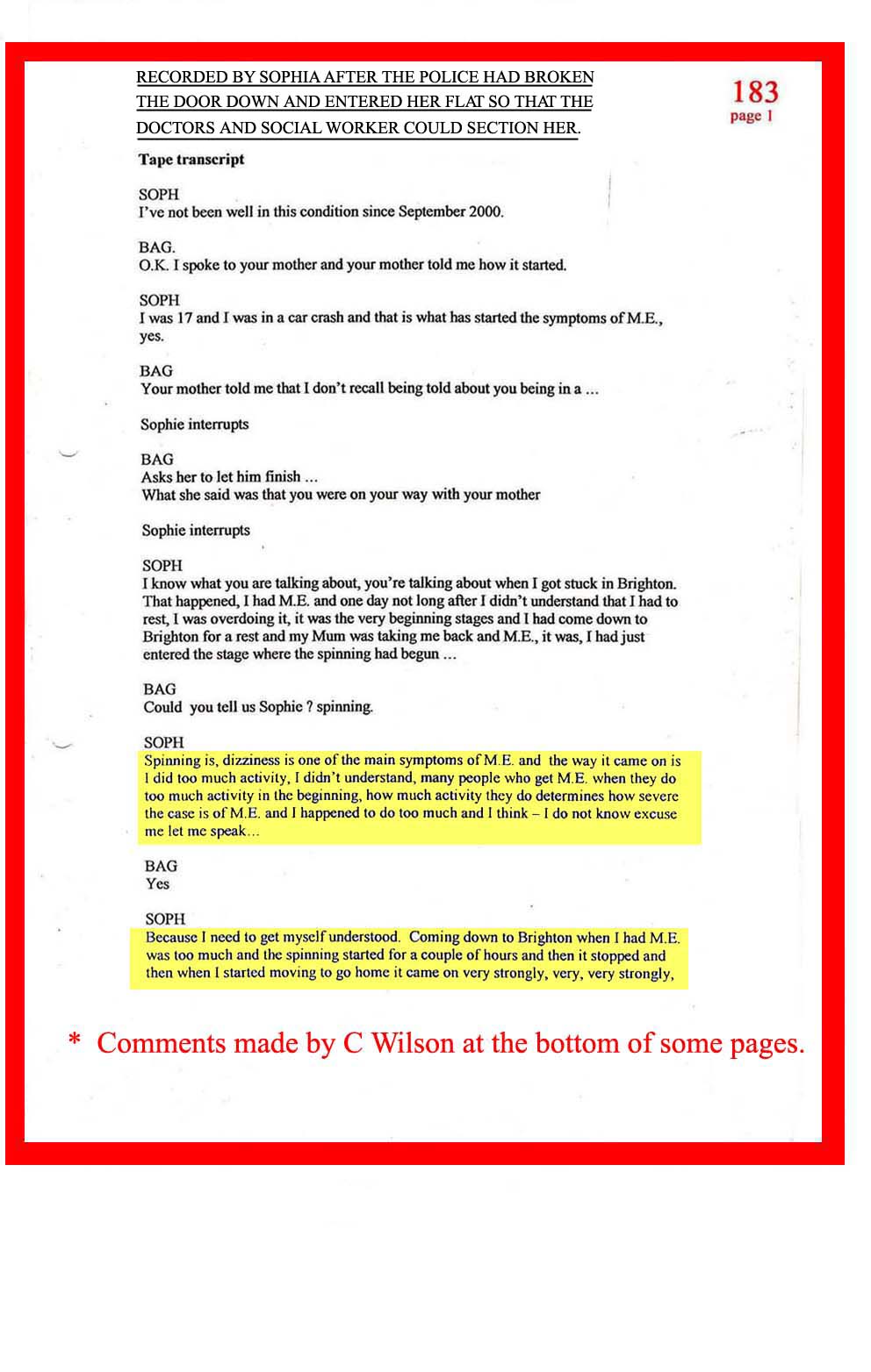 DOC.No. 183 (Transcript of tape made during sectioning of Sophia)