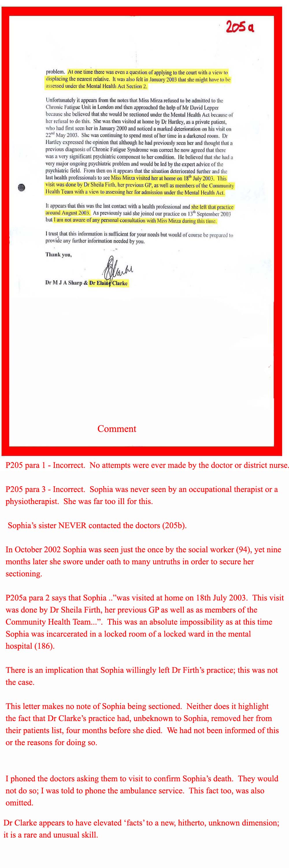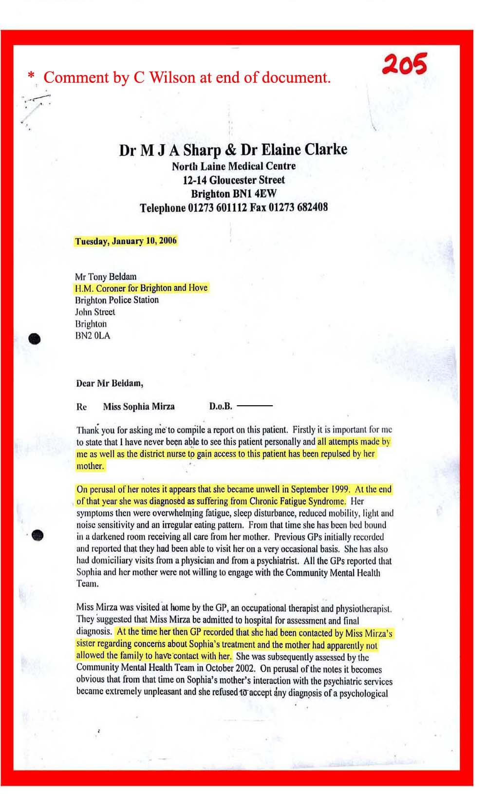 DOC.No. 205 (Dr Clarke's letter which was read out at the coroner's court in June 2006.