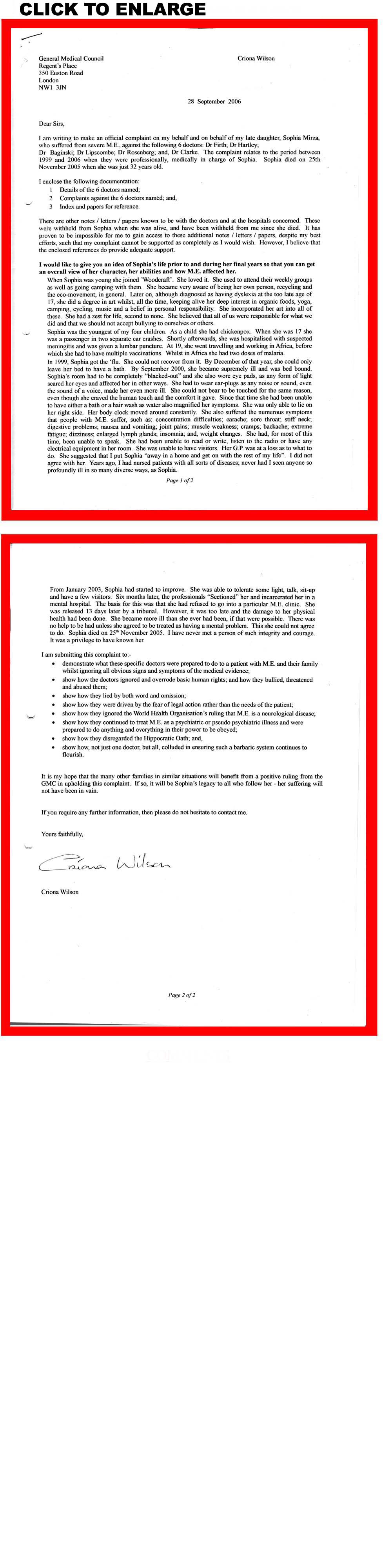 Link to:-Covering letter (dated 28th sept. 2006) sent with the complaints overview letter.