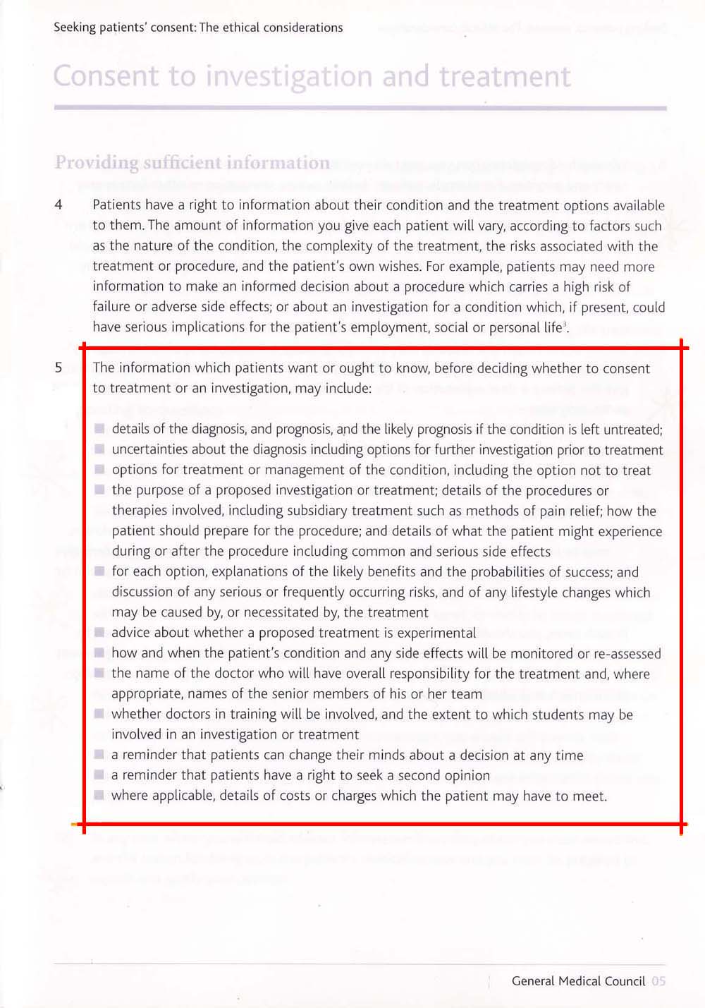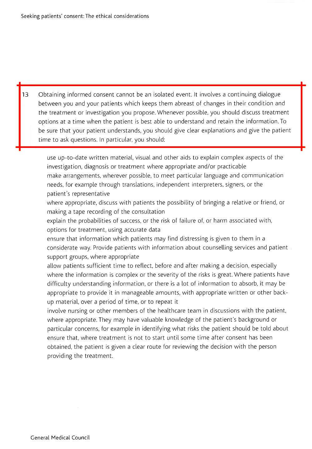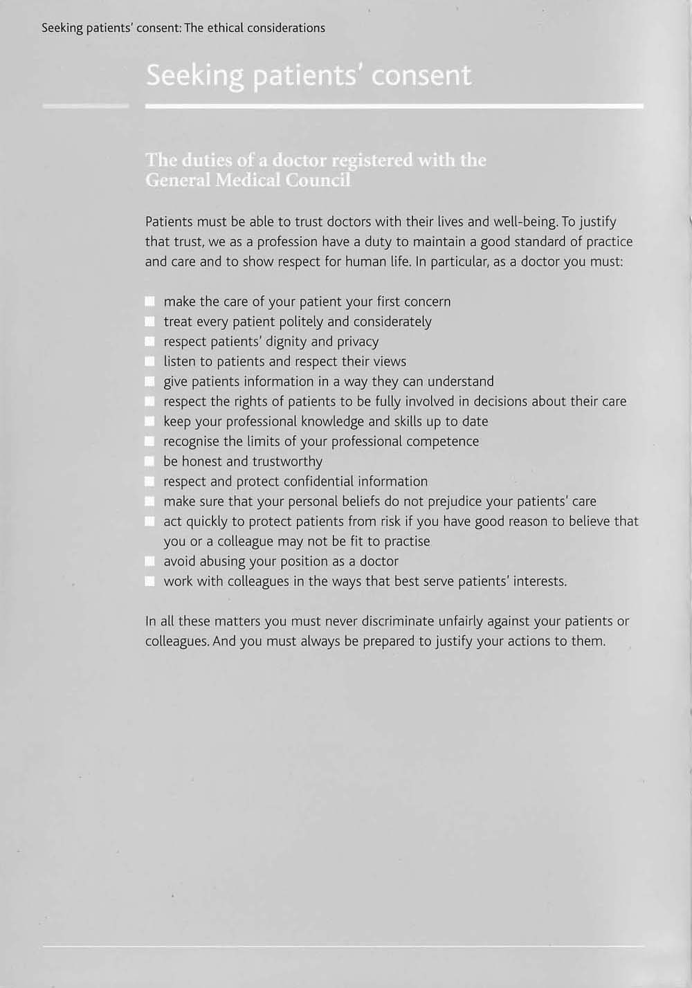 GENERAL MEDICAL COUNCIL BOOKLET :- SEEKING PATIENTS CONSENT CLICK ON PAGE TO OPEN & ONCE MORE TO ENLARGE,THEN CLICK ON BACK BUTTON FOR THE NEXT PAGE. I have marked in red those points which I believe the doctors ignored or contravened. FRONT COVER INSIDE COVER PAGE 01 PAGE 02-03 PAGE 04 PAGE 05 PAGE 06 PAGE 07 PAGE 08 PAGE 09 PAGE 10 PAGE 11 PAGE 12 PAGE 13 PAGE 14 PAGE 15 PAGE 16 PAGE 17 PAGE 18 PAGE 19 PAGE 20 PAGE 21 PAGE 22 BACK COVER